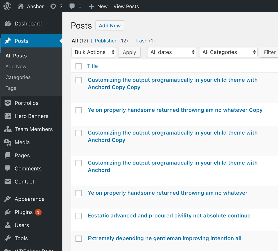 Step 2 – Click on Add New to make a new post. Create a title and insert your post content in the editing field. You can use any of our short code Obour elements inside the post.